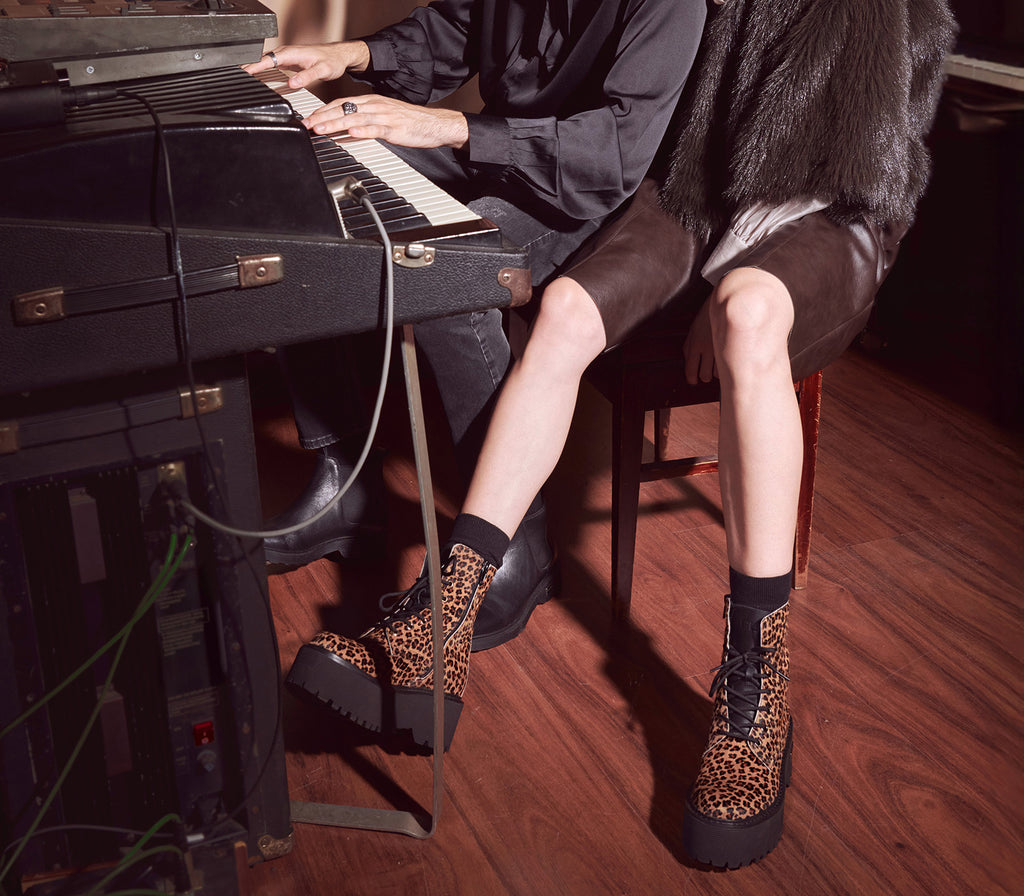 Intramontabili questi anfibi in pelle firmati Cult della linea AXL, nella loro nuova e distintiva versione animalier. Volumi aumentati con occhielli, placca in metallo, maxi suola nera a contrasto e chiusura con stringhe: questo nuovo modello aggiungerà un tocco rock ad ogni vostro outfit.