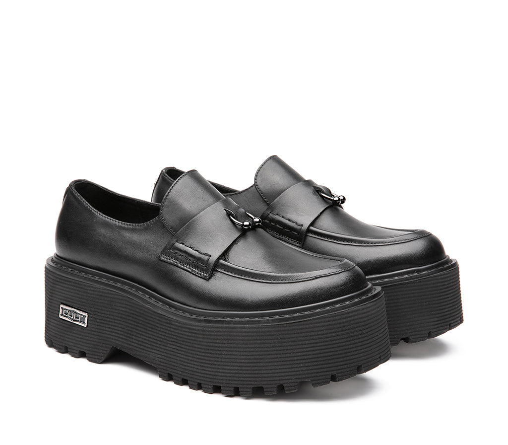 I mocassini AXL realizzati in pelle nera e firmati Cult presentano un design contemporaneo e un carattere deciso. Il dettaglio del piercing metallico, elemento iconico del brand, dona un tocco distintivo e originale, mentre la maxi suola extralight in EVA aggiunge volume, per affrontare l’inverno con stile e leggerezza. Completati dall’iconica targhetta con logo, questi mocassini esprimono un design audace, dal carattere senza tempo.