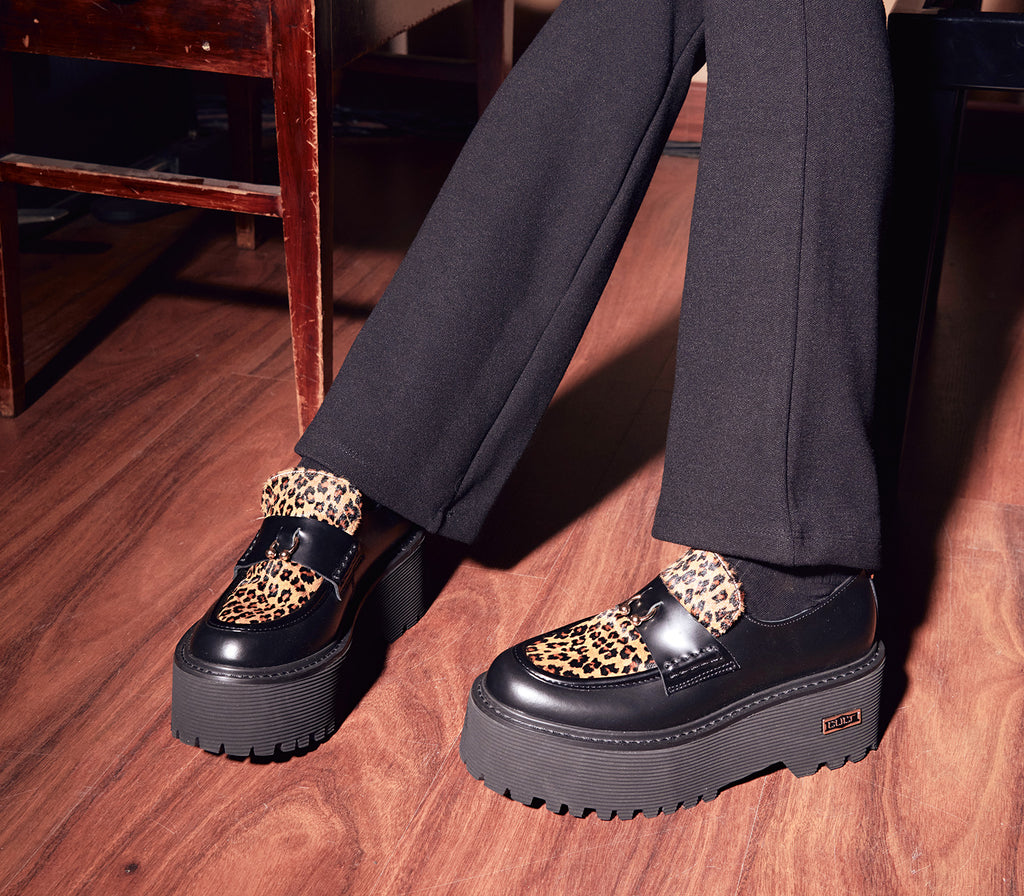 I mocassini AXL, realizzati in pelle nera e firmati Cult, presentano un design contemporaneo e un carattere deciso. La nuova versione animalier valorizza il dettaglio iconico del piercing metallico, che dona un tocco distintivo e originale, mentre la maxi suola extralight in EVA aggiunge volume per affrontare l’inverno con stile e leggerezza. Completati dall’iconica targhetta con logo, questi mocassini esprimono un design audace, dal carattere senza tempo.