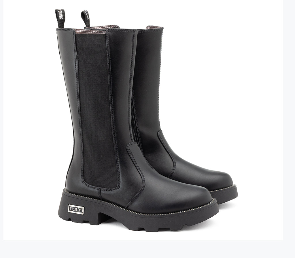 Perfetti per un look di carattere, questi stivali firmati Cult Young con fascia elastica sul gambale e caratterizzati dall'iconica targhetta metallica con il logo del brand. Realizzati in ecopelle nera liscia, sono sostenuti da una suola in gomma a elevata aderenza e reattività.