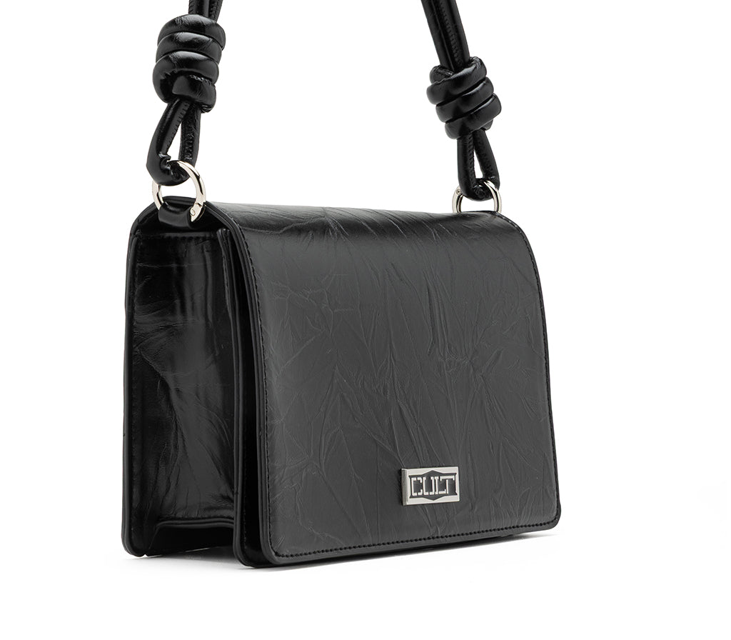 La nuova borsa spalla modello Simon firmata Cult per la stagione SS26 è realizzata in ecopelle nera e fonde design strutturato e finiture metallizzate. Caratterizzata dall'iconico logo in placca e un manico con dettagli annodati, è l'accessorio cool definitivo per un look audace e senza compromessi. Abbinala a un paio di anfibi estivi Cult con suola track o a dei sandali platform con borchie per un contrasto ultra-cool. Completa l'outfit con un mini-dress nero o un denim distressed per esaltare la tua anima più glam-rock e ribelle. Dimensioni: 22,5x14,5x9