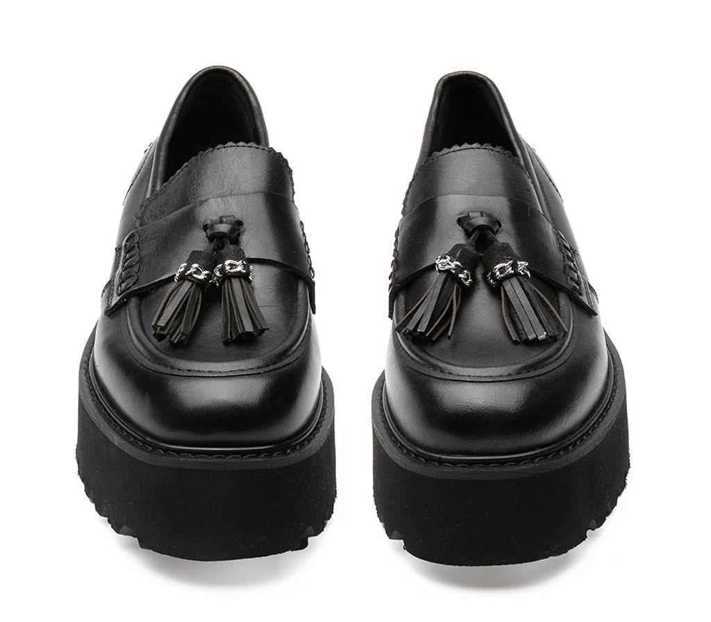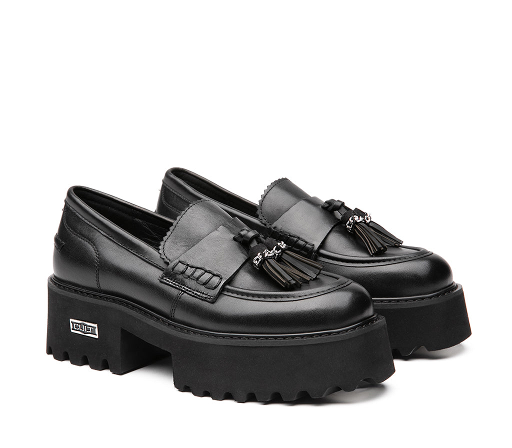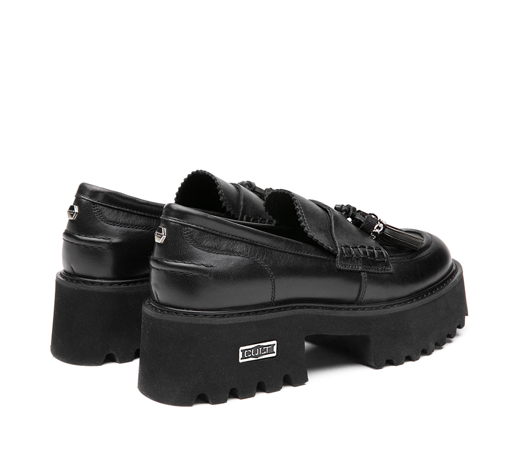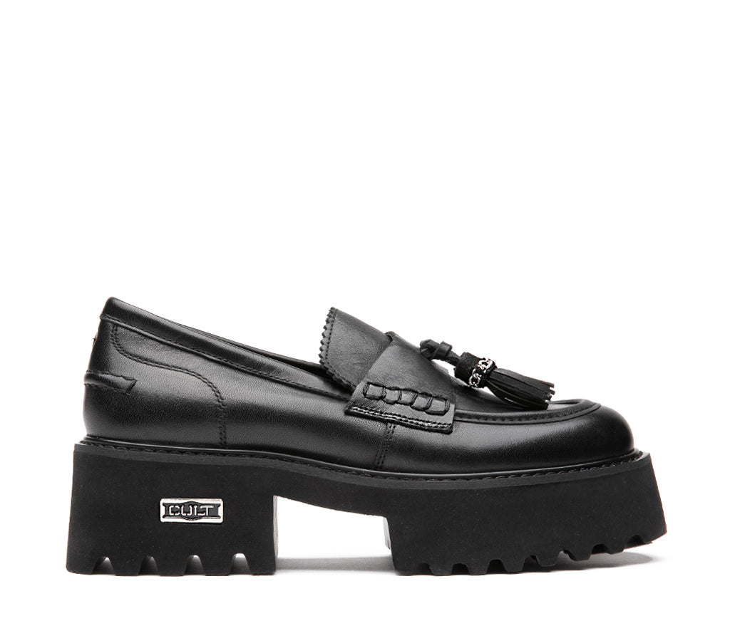 Classic rebel, il nuovo mocassino della linea CHER by CULT rompe gli schemi con una silhouette tradizionale reinterpretata in chiave urban. Realizzato in pelle nera con suola chunky scolpita, combina l'eleganza del tassello con la grinta della catena metallica. Il dettaglio iconico? La piastrina con logo CULT applicata sulla suola laterale, che conferisce unicità e riconoscibilità. Una scarpa pensata per chi vuole distinguersi, anche con un tocco classico. Altezza tacco 5 cm.