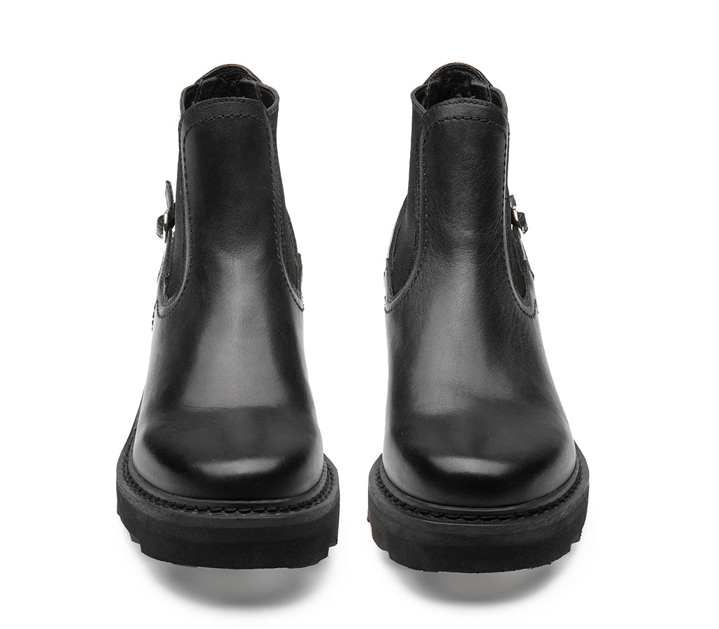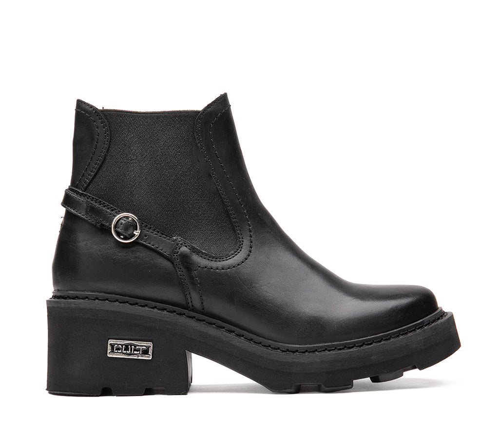 Carattere deciso per questo nuovo Beatle firmato CULT della linea GRACE in pelle nera con fondo platform scolpito per massimo impatto visivo e grip urbano. Il cinturino decorativo con fibbia metallica rotonda sul lato dona un tocco rock, mentre il logo “CULT” inciso sulla placca metallica sigla il modello con stile. La costruzione del tacco e della suola chunky rendono questi stivaletti perfetta per outfit bold e personalità che vogliono distinguersi. Altezza tacco 5 cm.