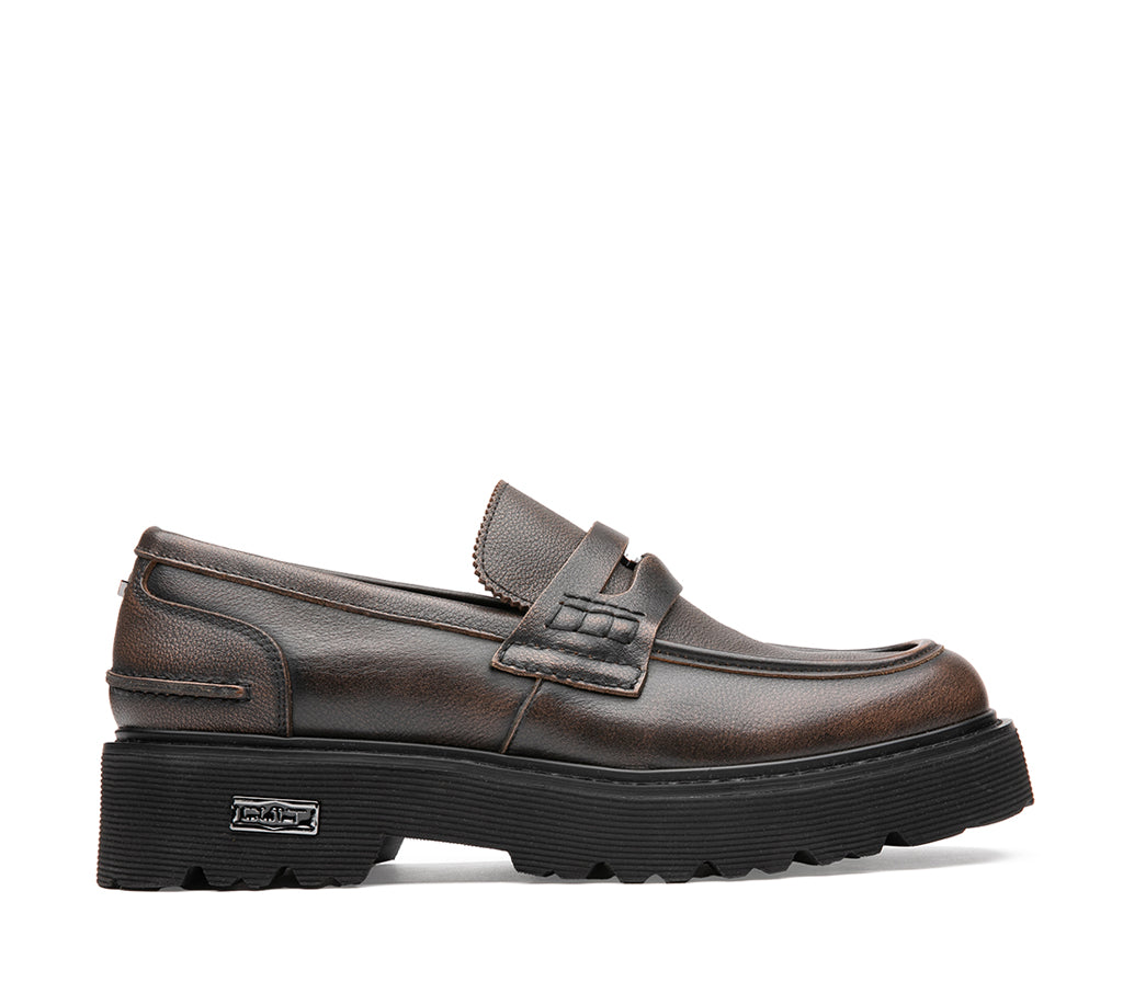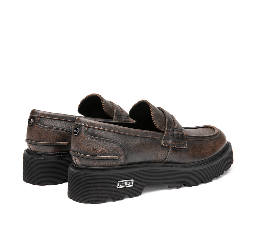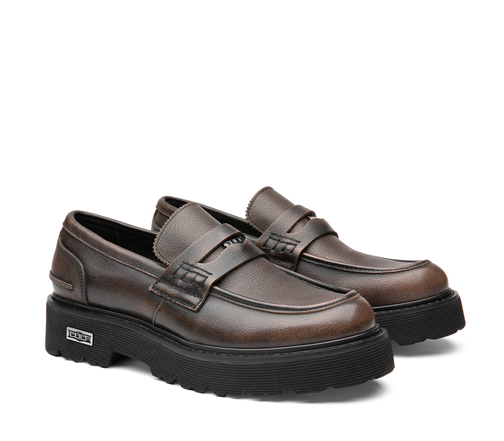 Date un tocco combat al quotidiano con i nuovi mocassini da uomo in pelle nero/marrone di Cult. Appoggiati su una generosa ma leggera suola a carrarmato, questo nuovo modello, realizzato per la stagione invernale fall/winter 25, unisce linee classiche a uno stile grintoso, perfetto per essere indossato day to night.