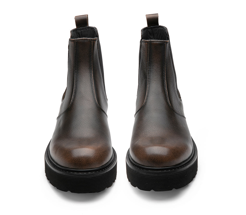 Date un tocco combat al quotidiano con i nuovi Beatle in pelle nero/marrone di Cult. Appoggiati su una generosa ma leggera suola a carrarmato, sono facili da indossare grazie agli inserti laterali elastici e al tirante che spicca sul retro.