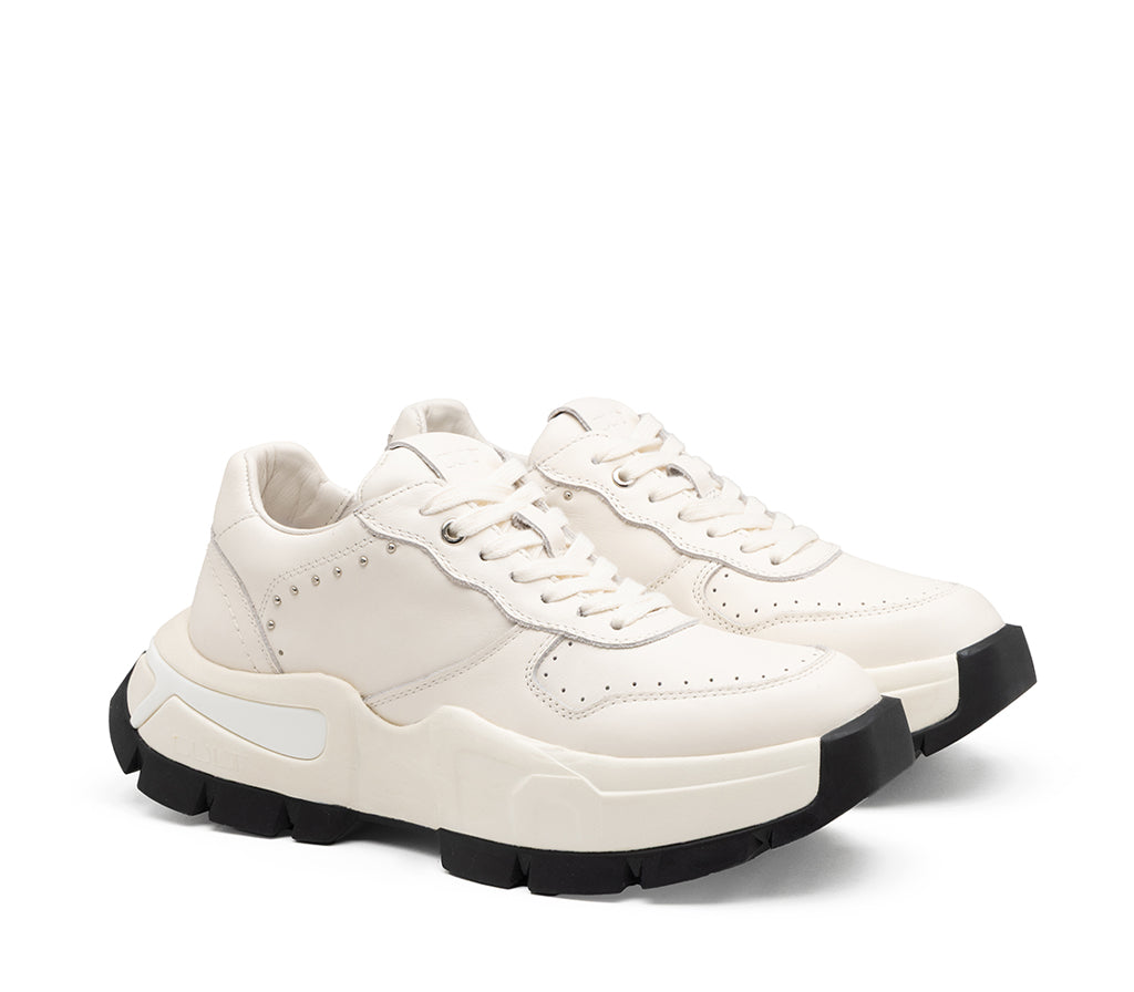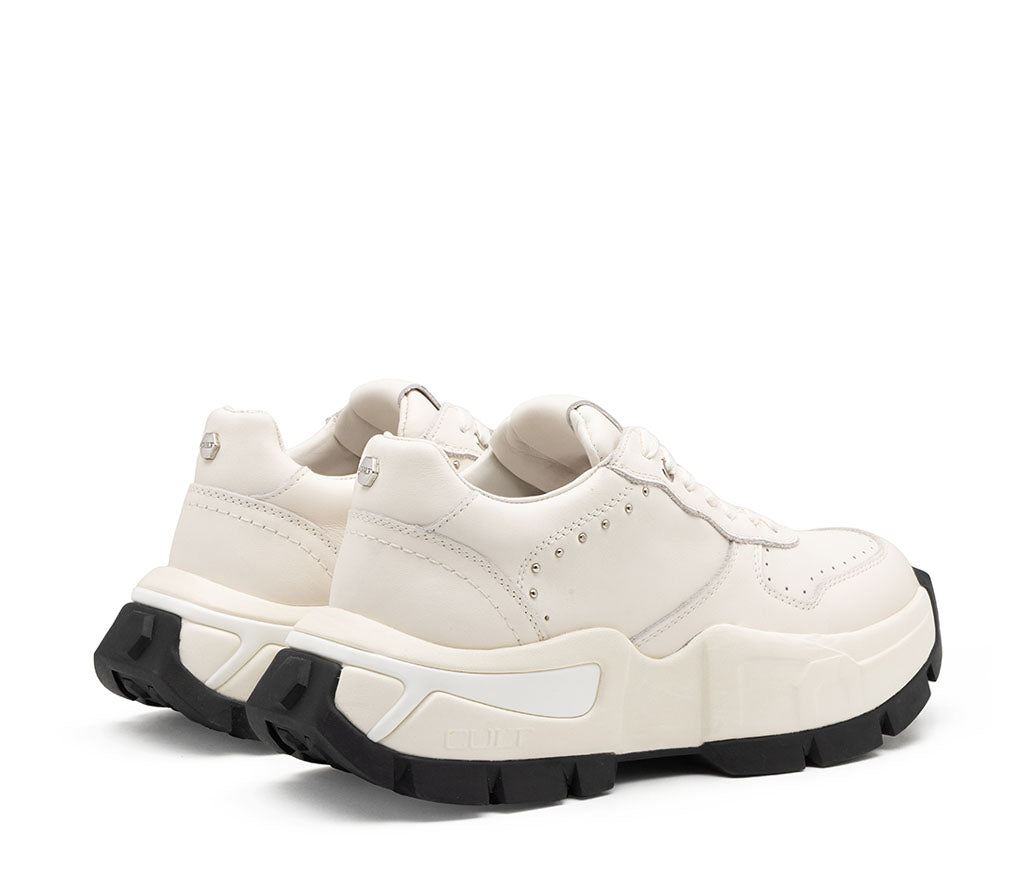 Versione chiara e luminosa della sneaker Taylor, in pelle off-white con suola in gomma nera a contrasto. Design raffinato, discreto ma deciso, ideale per look moderni e sofisticati, in perfetto stile CULT.