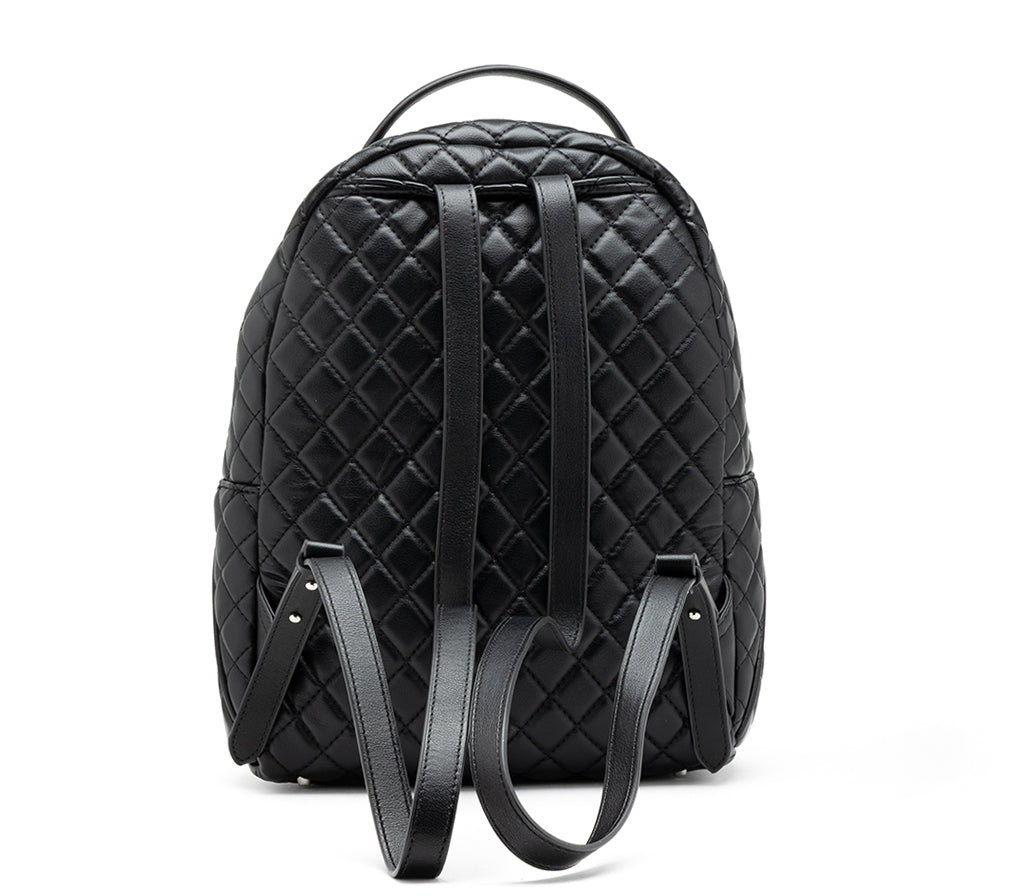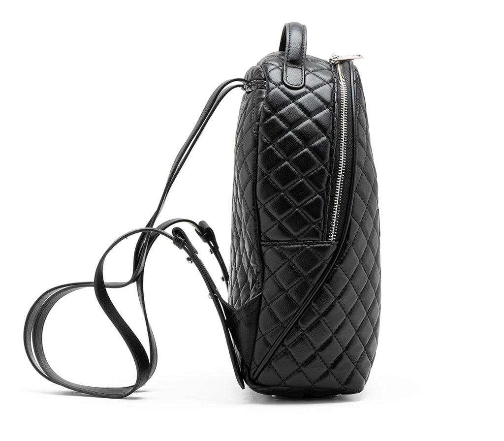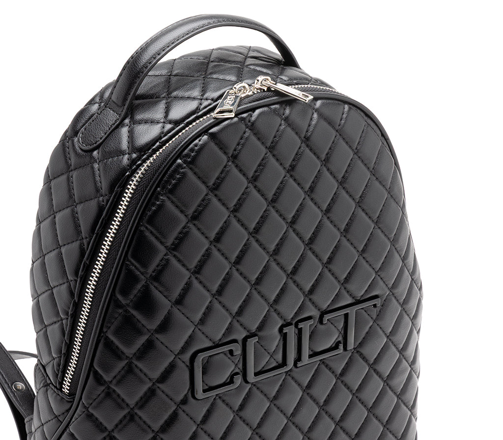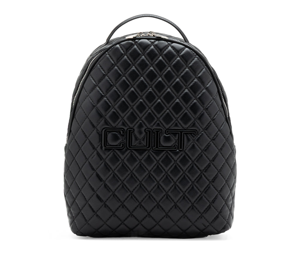 Funzionalità urban e attitudine rock si fondono nello zaino Girlschool per la stagione SS26, un accessorio dal design contemporaneo pensato per chi non rinuncia allo stile nei propri spostamenti quotidiani. Realizzato in ecopelle nera con una raffinata lavorazione trapuntata a diamante, questo zaino si distingue per la sua silhouette verticale e stondata, impreziosita dal maxi logo CULT a rilievo cucito frontalmente. La struttura capiente e i dettagli metallici lo rendono l'alleato perfetto per affrontare la giungla urbana con un tocco cool e deciso. dimensioni: 23,5x30x10.